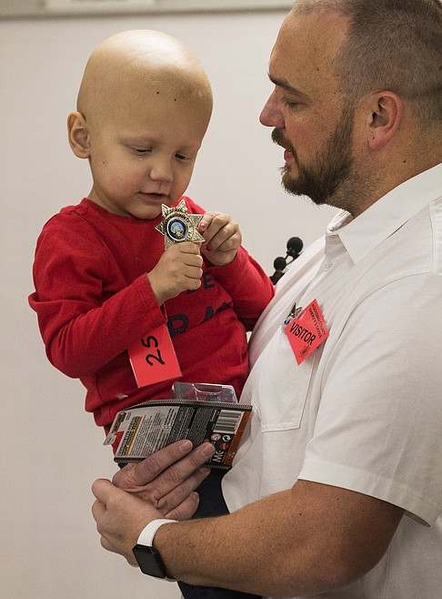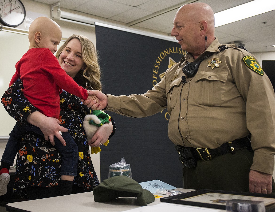 COEUR d'ALENE — Landon Hill raised his tiny right hand Wednesday as Kootenai County Sheriff Ben Wolfinger swore in the 3-year-old as an honorary deputy.