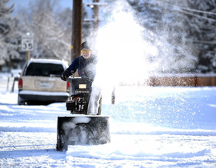 Brian Mathews of Kalispell uses a snowblower to remove snow from his driveway on Monday morning, February 1, in Kalispell. (Brenda Ahearn/Daily Inter Lake)