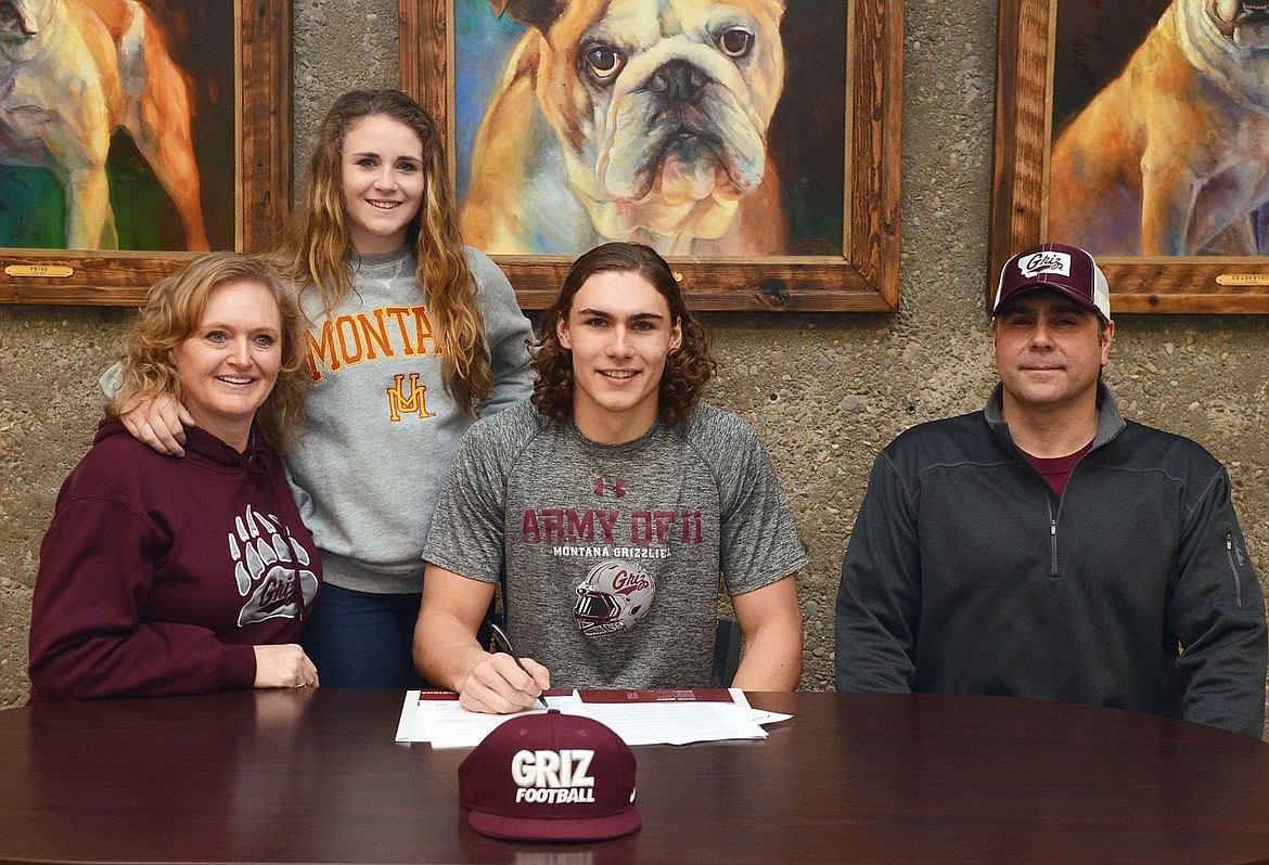 Whitefish senior Jed Nagler signs a letter of intent on Wednesday to play football at the University of Montana. (Matt Baldwin/Whitefish Pilot)