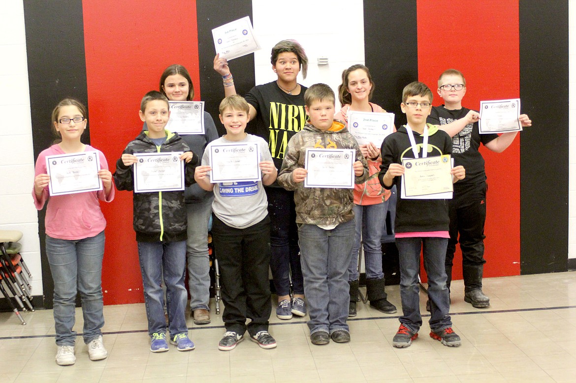 Caleb Grieco, Jane Roster, Austin Campbell, Jarod Felts, Hayden Gobel, Russel Morton, Lindsay Burgner, Cheyanna Perry, Saleh Bloodsaw and Sage Jackson were the participants in the Hot Springs Geography Bee, showing off their certificates of participation after the competition’s completion.
