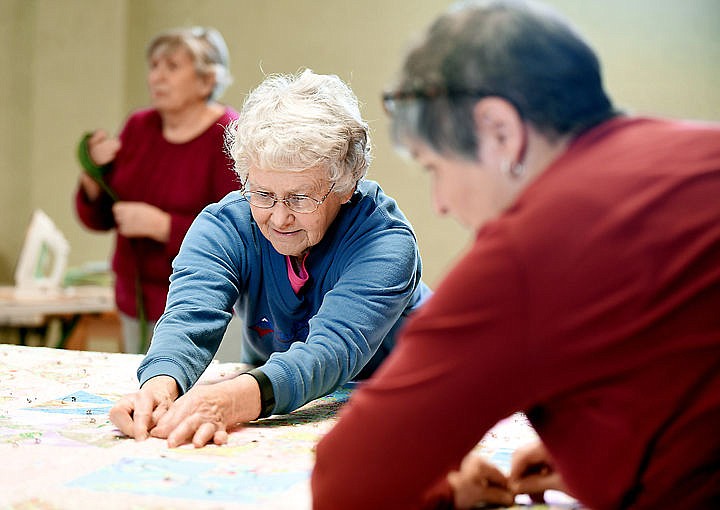 Pat Freebury of the Epworth Methodist Church and other church members are making nine quilts for the Sparrow's Nest of Northwest Montana on Wednesday, February 3, in Kalispell. More quilts are needed. Other groups or individuals who want to get involved should contact Claire Anderson at 406-309-5196. (Brenda Ahearn/Daily Inter Lake)
