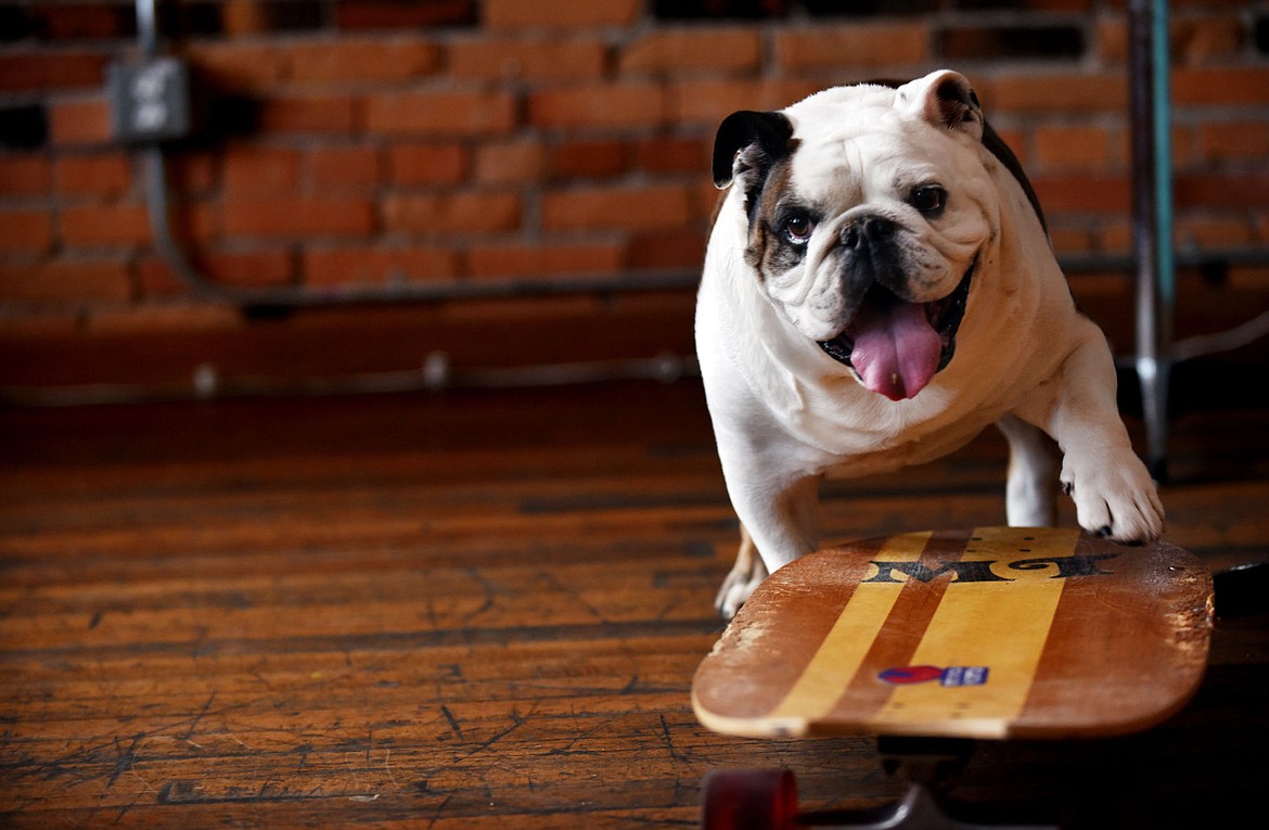 Murphy Taterskins, Grunow's skateboarding dog, is a regular in downtown Whitefish.