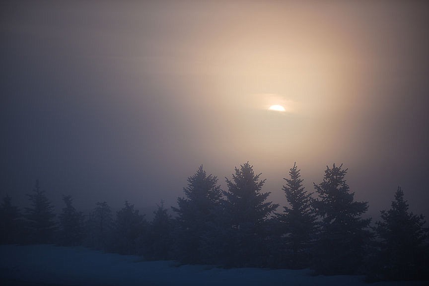 The sun begins to rise over a foggy morning in West Valley on Wednesday, February 10. (Brenda Ahearn/Daily Inter Lake)