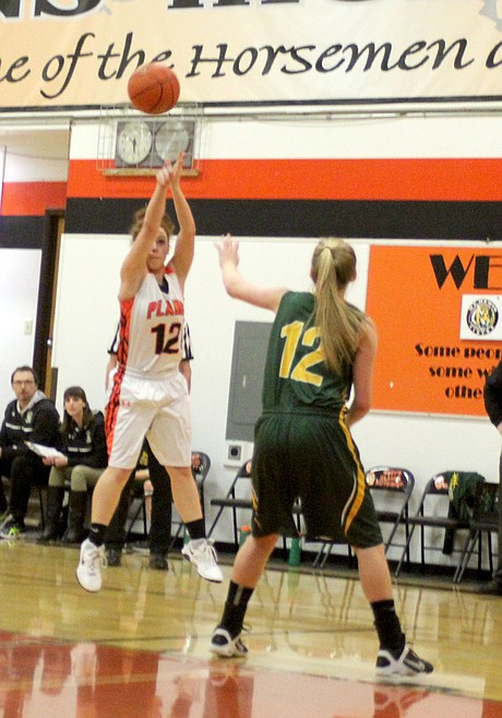 Kassidy Kinzie shoots for the basket over the head of one of the St. Regis Lady Tigers.