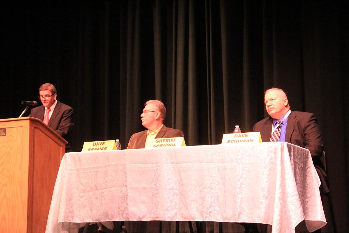 Tuesday, Feb. 9 began the debate for the 2016 sheriff election for Boundary County. Candidates Dave Kramer, Dave Schuman and Sheriff Greg Sprungl were invited to be participants in the event which were open to the public and moderated by Steve Fioravanti. Sheriff Greg Sprungl who is running for re-election was invited multiple times but absent without response from his office.
