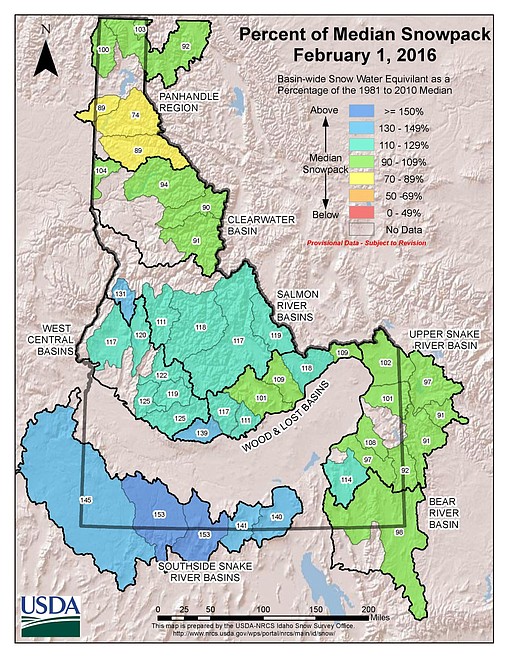 Snowpack numbers follow similar patterns with the lowest being the Coeur d'Alene River drainage at 74 percent of median and the highest being Rathdrum Creek at 116 percent.