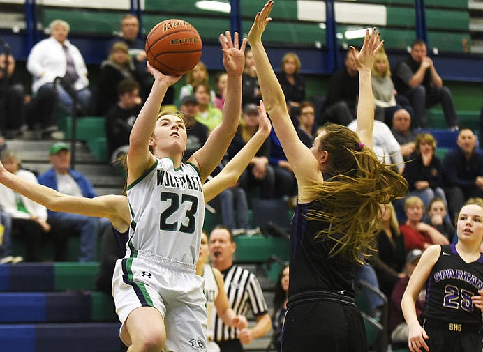 The Wolfpack (10-6 overall, 4-4 Western AA) went to the paint often against the Spartans (16-0, 8-0), breaking the tight zone defense with quick passing inside. The approach paid off, with Glacier holding the lead for all but five possessions in the first half, entering halftime tied at 22-22 after Sentinel made a late flurry.