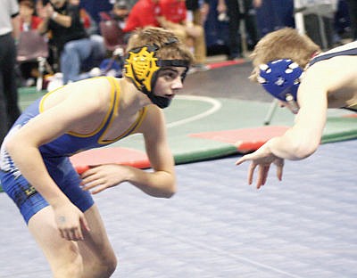 Freshman Buddy Doolin at state wrestling tournament Feb. 13.