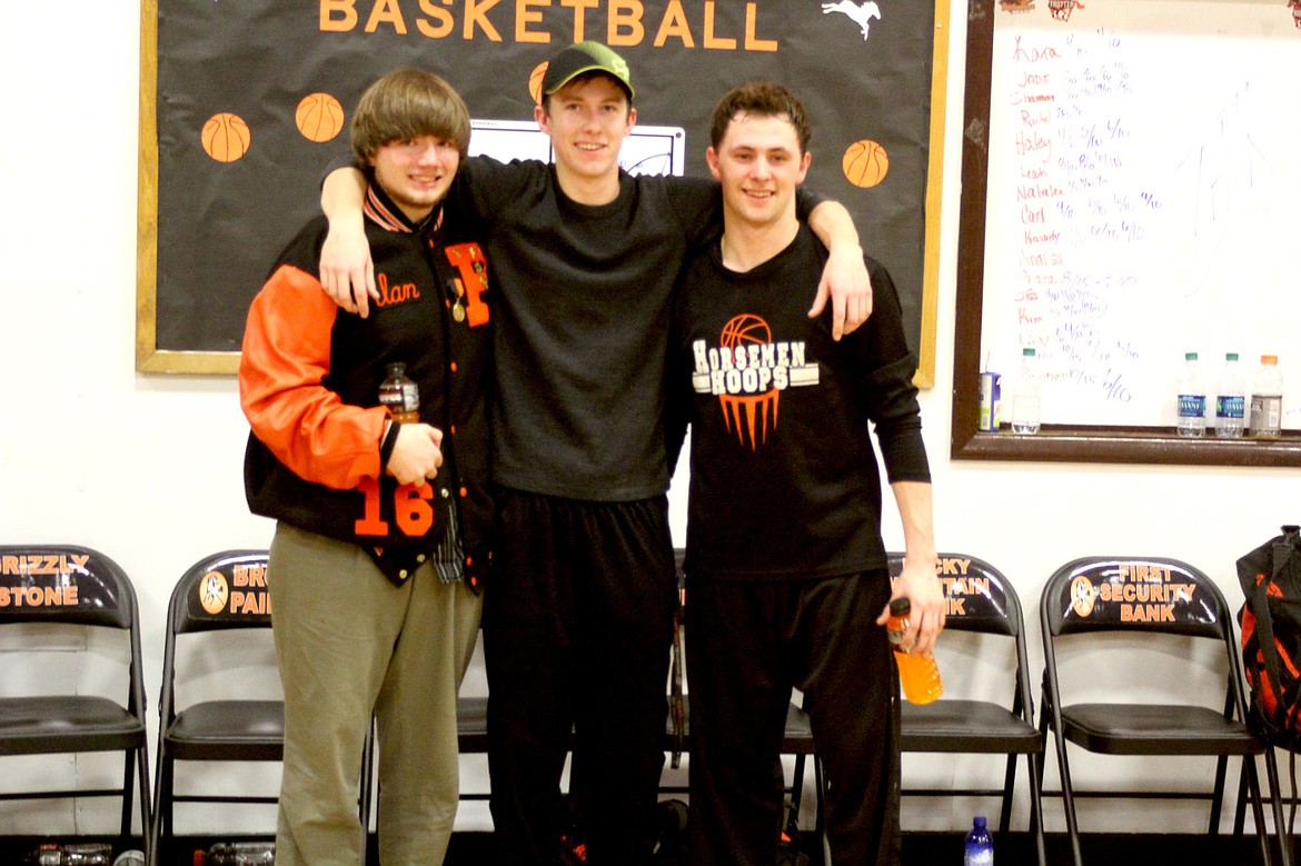 Alan Ihms,Trent Brouillette and Cole Benson were recognized for their time on the Horsemen basketball team at Friday’s senior night game.