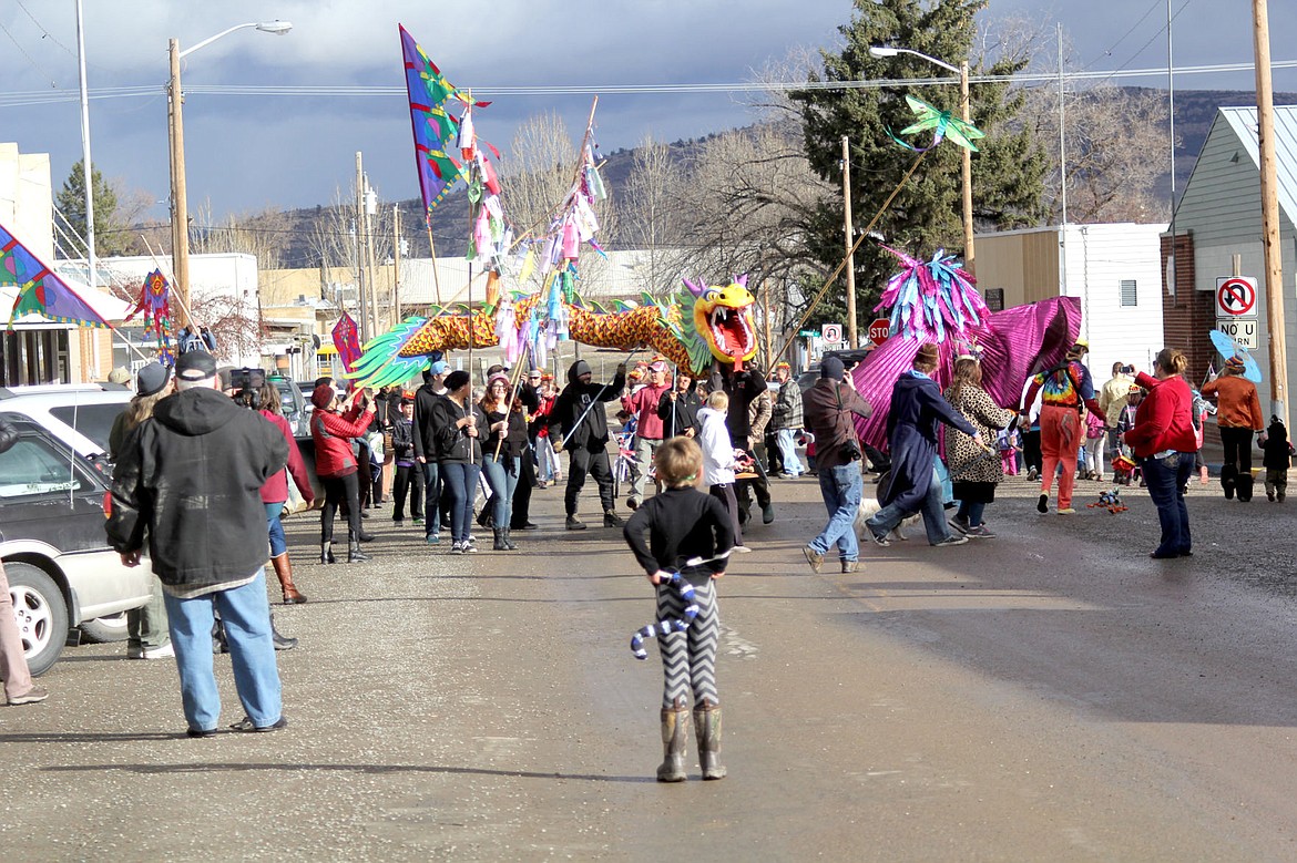 A Chinese dragon circles around an intersection of Hot Springs during their Chinese New Year Parade.