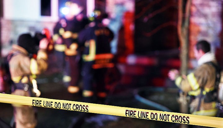 Firefighters from Kalispell Fire and West Valley Fire return to the scene of a structure fire at 327 Ponderosa Lane north of Kalispell on Saturday morning, around 2:30 a.m. The fire was initially responded to on Friday evening, but firefighters were called back to the scene due to reports of smoke and popping noises. (Brenda Ahearn/Daily Inter Lake)