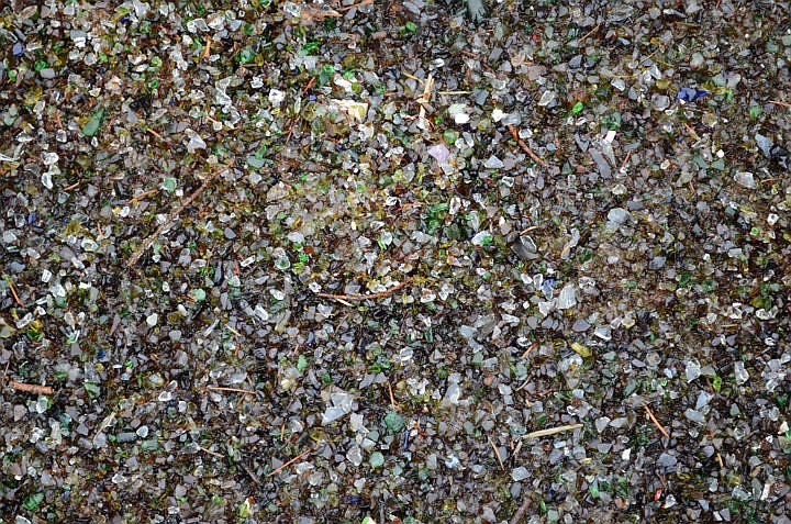 But rather than shipping the glass out of state to a manufacturer, New World sells it in sandbag-style packaging and piles it up near the highway to sell by the yard. People bring glass from as far as Browning to be recycled. After the glass has been pulverized, people come as far away as Thompson Falls to buy it for home projects, sometimes asking for solid colors such as blue, green or brown.
