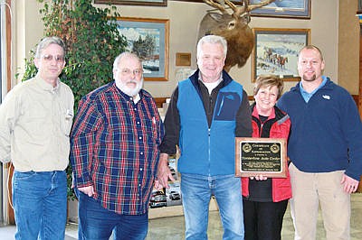 John Rios, left, with Lincoln County commissioners Greg Larson, Mark Peck and Mike Cole.