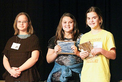Lincoln County spelling bee 2016 included third runner-up Mykayla Ledbeter of Yaak Elementary, left, second runner-up Olivia Ramirez of Troy Elementary and first place went to Adeline Roesler-Begalke also of Troy Elementary. The winning word was pulchritude.