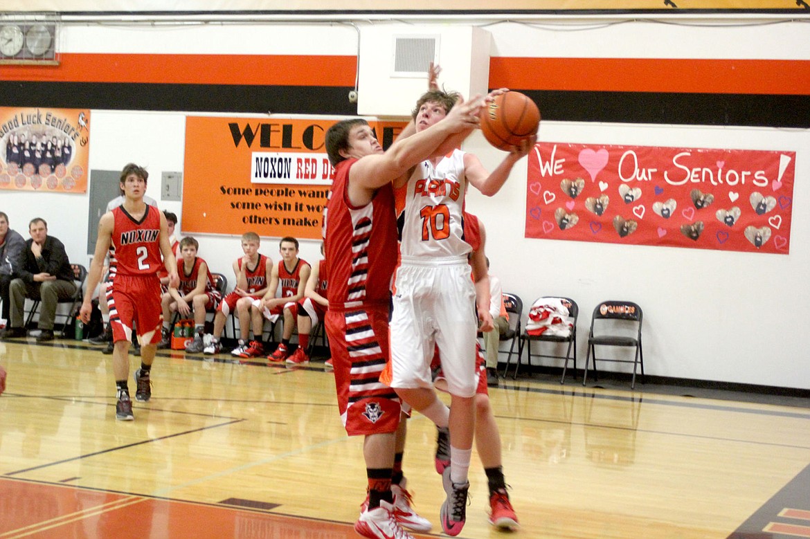 Ryan Ovitt dodges one of Noxon’s players to take a shot during the Plains senior night earlier this season.