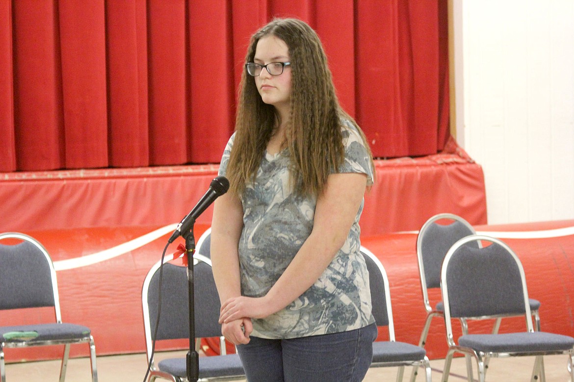 Sarah Rosli, champion of the Hot Springs spelling bee, thinks out how to spell the word mutiny.