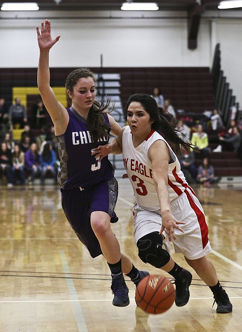 TWO EAGLE RIVER – Tyra Michel 13, Shay-lyn Andrew 1, Misty Mendoza 4, Naomi Stevens 4, Kristen Hewankorn 11, Whisper Michel 2, Danielle Adler 2, Esperanza Orozco 8.