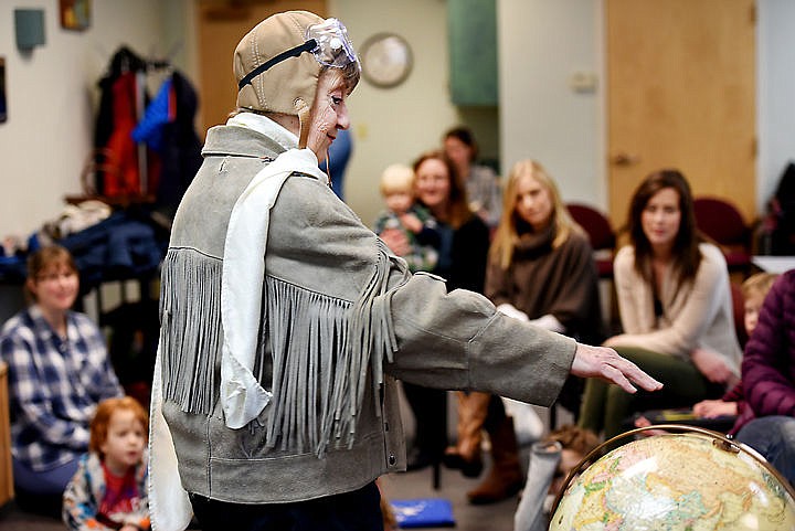 Maddux is a regular at story hour at the Whitefish Community Library, where she dons aviator gear for her “Story Lady” persona who flies around the world in her hot-air balloon, touching down to tell stories to children.