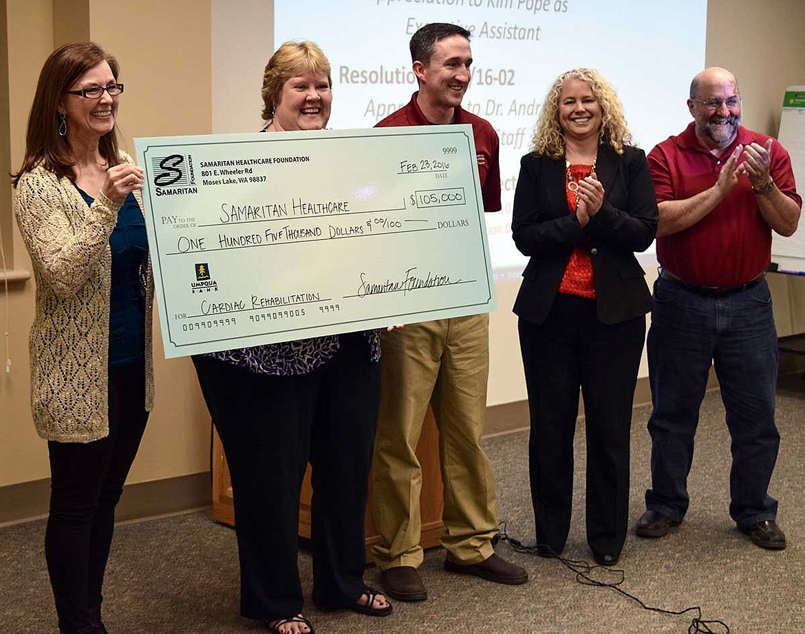 At the Samaritan Board of Commissioners meeting this week, representatives from the Foundation were on hand to present the hospital with the check for $105,000, which it raised through fundraising efforts over the last year. Gretchen Youngren, the hospital’s director of development and communications, said the Foundation set out to raise the money to fund the hospital’s purchase of special cardiac rehab equipment so it could offer those services in Moses Lake.