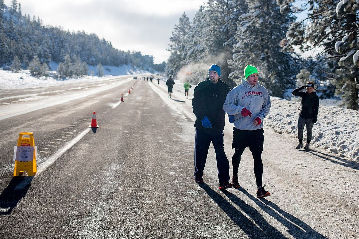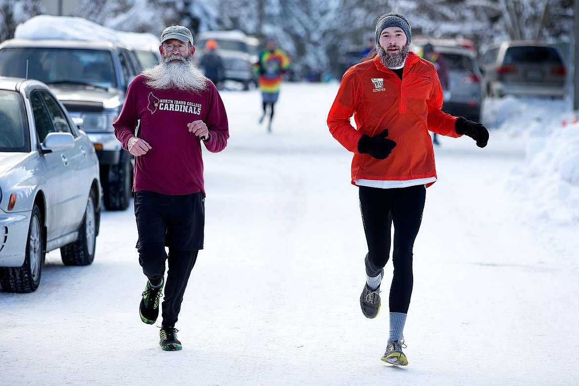 Daniel Shaw of Coeur d'Alene was the first to cross the finish line. His time was 28 minutes, 58 seconds. He said it wasn't too cold, although frost had formed on his eyebrows. It was Shaw's third time at the Hangover Handicap, though he said it had been about six years since he last ran it.