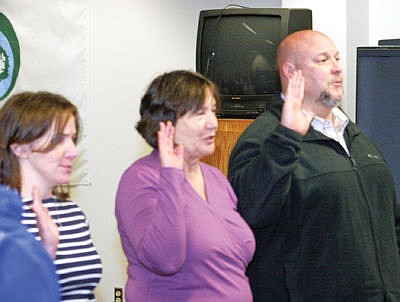 Libby City Council members being sworn in include Dejon Raines, left, Peggy Williams and Brian Zimmerman.