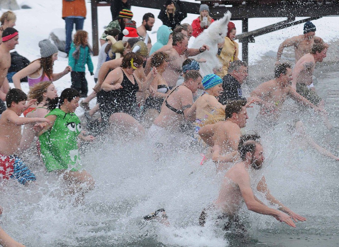 The annual Polar Bear Plunge attracted a crowd Friday afternoon for the traditional splash into the cold water of Woods Bay on Flathead Lake.