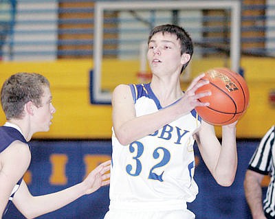 Senior Jason Brant looks to pass with Jack Burns guarding in first quarter vs. Loyola Sacred Heart Jan 9, 2016.