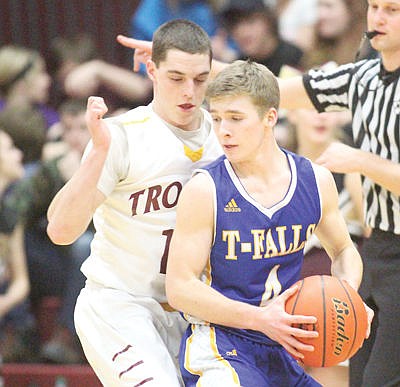 Senior Cody Johnston guarding Tanner Laws vs. Thompson Falls Jan. 2, 2016.