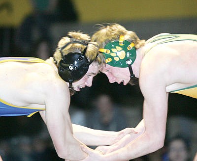 Sophomore Laine Young vs. senior James Buckley of Whitefish at 138, Dec. 8, 2015. Young prevails 8-4.