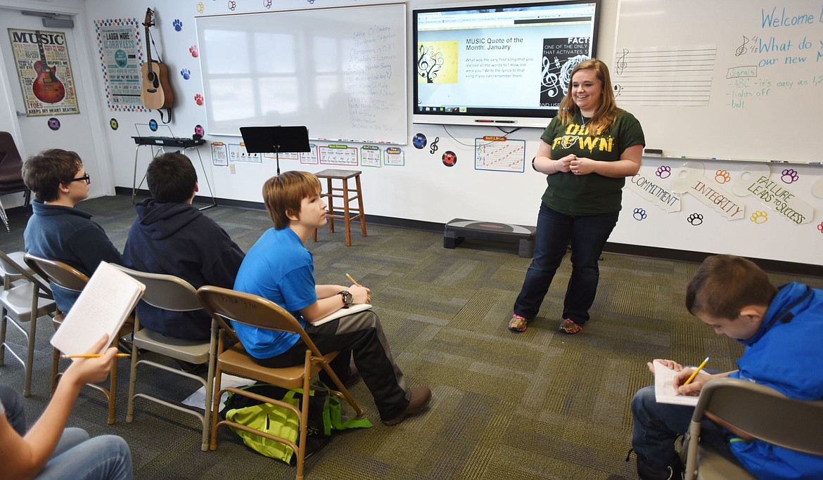 Jenna Wold teaches music in one of two new classrooms at Kila School on Friday, January 8. The room was part of 2400 square feet expansion that created a new classroom and the allowed the music classes to be moved from the basement into this new space. The project also added a set of bathrooms to this section of the school. (Brenda Ahearn/Daily Inter Lake)
