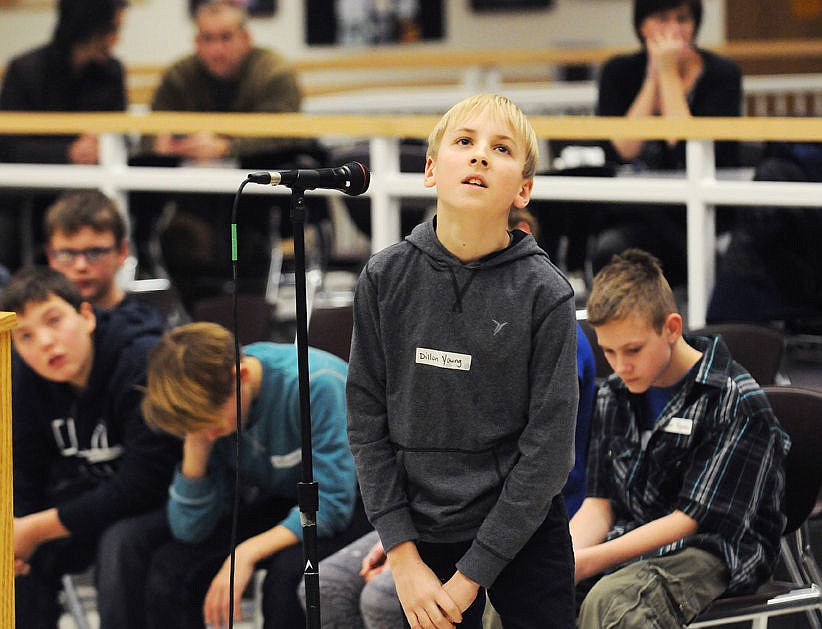 Seventh-grader Dillon Young reacts after missing a question during the Columbia Falls Junior High Geography Bee on Tuesday. (Aaric Bryan/Daily Inter Lake)