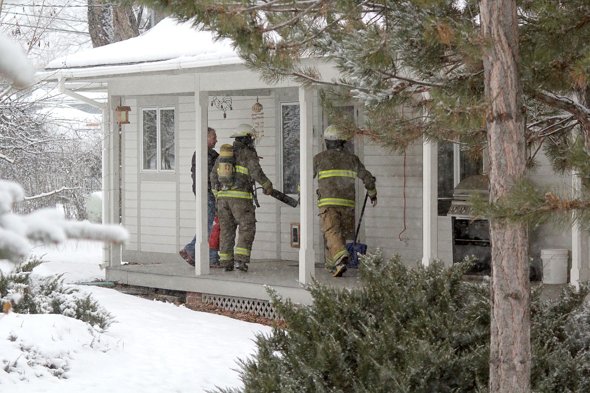 Firefighters from Plains City Fire prepare to enter a home on Stanton Street to handle a fire in the oven.