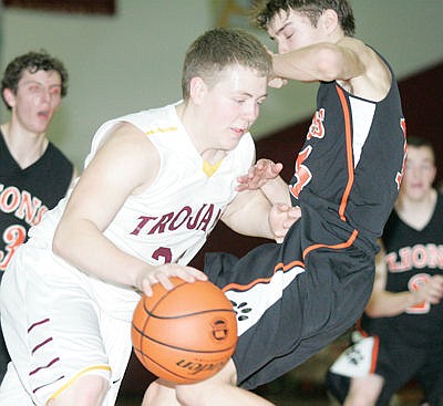 Lindsay Laws steals the ball from Kaitlyn Downey in first quarter vs. Troy, Jan. 2.
