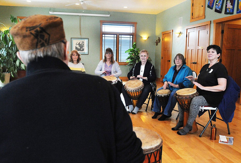 A group of women learn how to drum during a class at the Imagine Health Wellness and Wisdom Center in Columbia Falls on Saturday, Jan. 16, 2016. (Aaric Bryan/Daily Inter Lake)