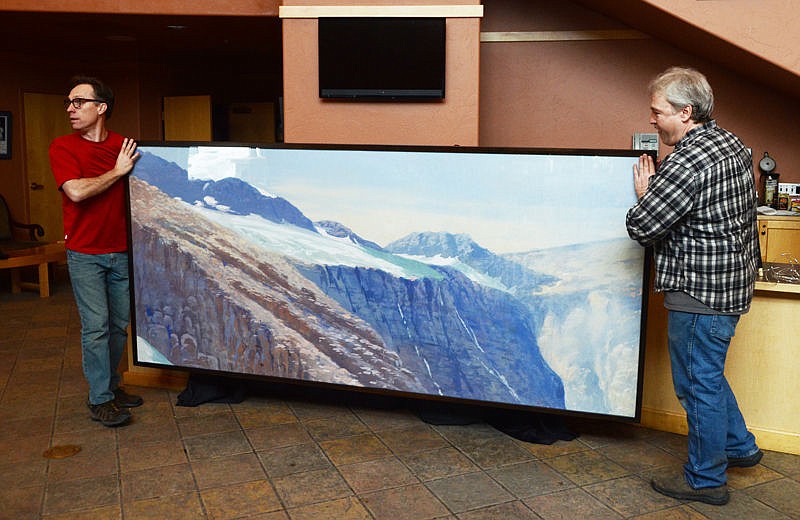 Last week, two of the larger murals were installed at the O’Shaughnessy Center in Whitefish. A 4-by-7.5-foot piece features a familiar Lake McDonald scene and a larger 4-by-9-foot work showcases glaciers from the high country. Both of the works were specified “Dining Room” on the backs as their original location, with no mention of the lodge in which they were originally displayed.