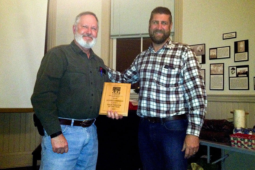 The owner of a North Fork land management consulting service is the 2015 Field Forester award winner presented by The Flathead Chapter of the Montana Society of American Foresters. Allen Chrisman of Kalispell received the award at the group’s Christmas Banquet.