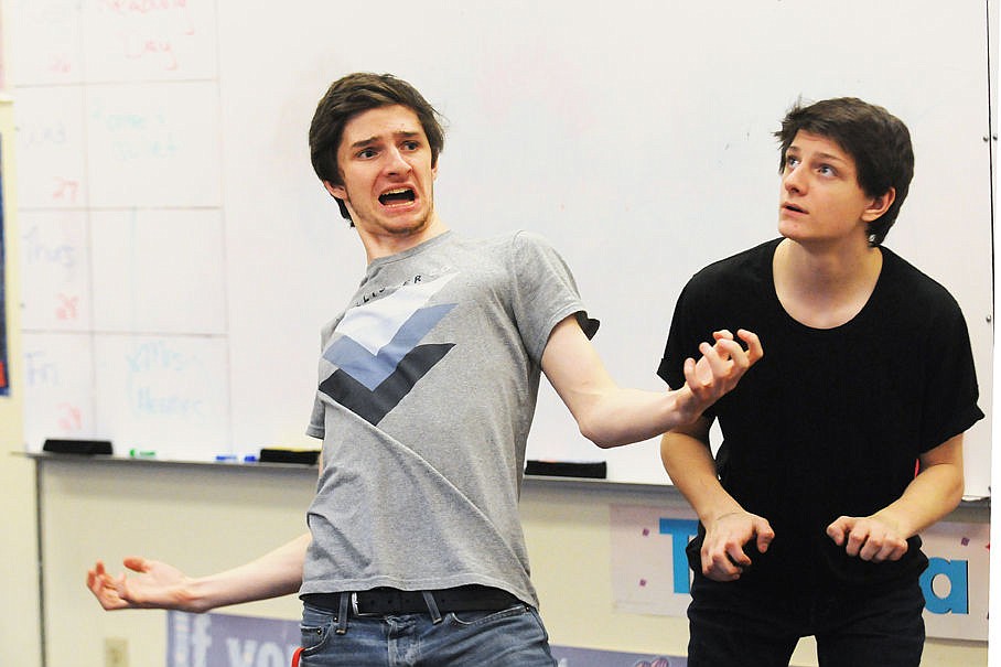 Flathead senior Ethan Hall, left, and his brother Edgar Hall, a freshman, practice their dramatic interpretation performance at Flathead on Tuesday as the prepare for the state speech and debate championship in Billings Friday and Saturday. (Aaric Bryan/Daily Inter Lake)