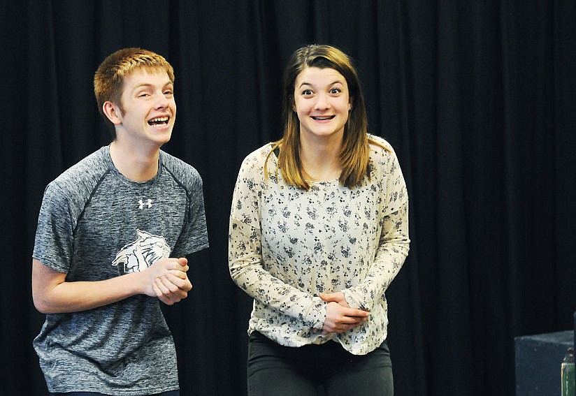 Glacier junior Brock Adkins, left, and senior Abby Van Allen practice their duo interpretation at the school on Tuesday as they prepare for the state speech and debate tournament in Billings this weekend. (Aaric Bryan/Daily Inter Lake)