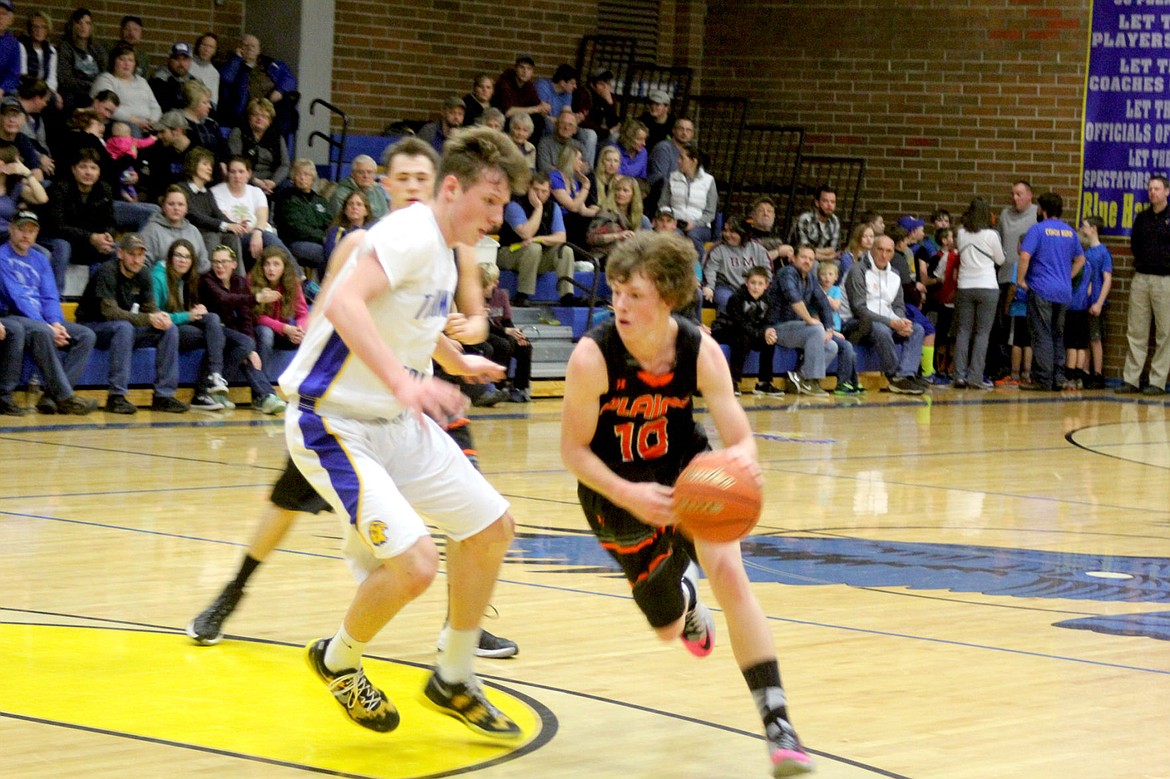 Ryan Ovitt, of Plains rushes past Trais Hoisington, of Thompson Falls, during their game Thursday.