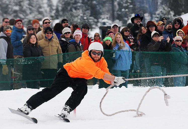Connor Brown goes around a turn during the World Invitational Skijoring event in Whitefish on Saturday. (Aaric Bryan/Daily Inter Lake)