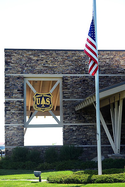 The American Flag is being flown today at half staff outside the Flathead National Forest Offices in Kalispell. (Brenda Ahearn/Daily Inter Lake)