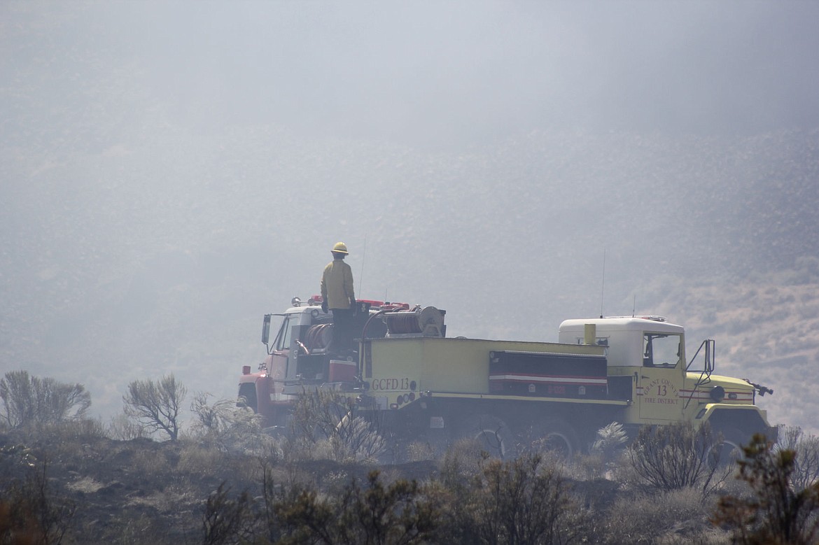 Firefighters with Grant County Fire District No. 7 responded to the scene, about nine miles north of Soap Lake on SR-17, about 1:10 p.m. The unidentified driver of the vehicle was reportedly ejected as it rolled, with sparks igniting brush near the road and wind causing the fire to spread.