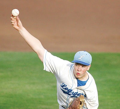 No. 34, Brady Bateman pitching top of first inning vs. Bitterroot Bucs June 17, 2016. (Paul Sievers/The Western News)