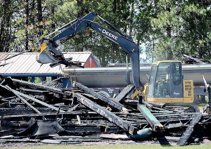 Tom Kemppainen works on demolishing the destroyed Sapa Johnsrud Stadium on Thursday, July 7, in Columbia Falls. (Brenda Ahearn/Daily Inter Lake)