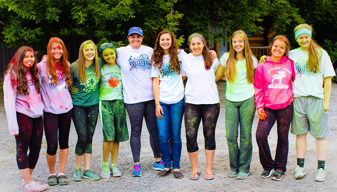 BONNERS FERRY--Saturday, June 18 was the first annual Color Blast Run by the BFHS Volleyball Team. Coach Kendra Maas, had the white Badger shirts donated by the Badger Booster. Each station was sponsored by a local business. Blue: BF Vet Clinic; green: Oxford Inc.; yellow: General Feed and Grain; orange: Kootenai Tribe; purple: Sugar Plum Floral and red: Iron Mike's Gym. Photos were taken by Monique Russell from https://moments2.shootproof.com .
