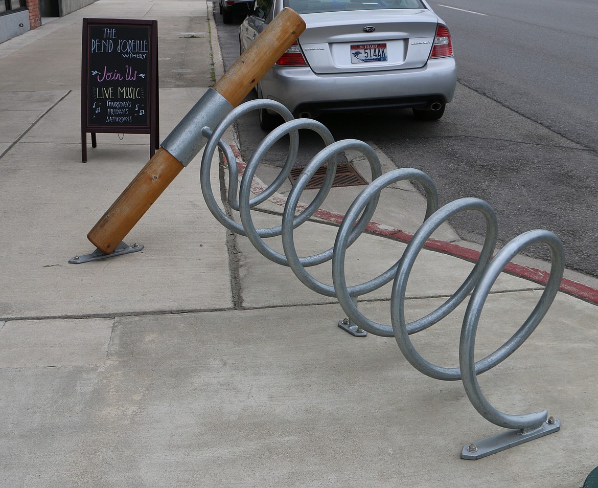 In another parking-related agenda item, the Pedestrian and Bicycle Advisory Committee presented the council with proposed standards for bicycle parking in Sandpoint. The standards include placement for bicycle racks and guidelines for effective rack designs. They said inverted U-shaped racks, also known as bike staples, were the best choice from both a safety and a security standpoint.
