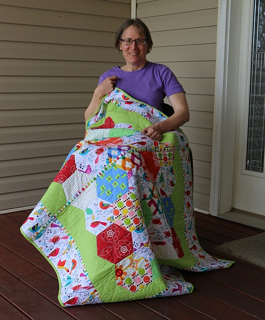 "I machine piece and do free-motion quilting on my Bernina. Lately, as my disease progresses and I get slower, I find it hard to manipulate the bigger pieces. I find myself making smaller pieces," she said.