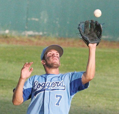 Braydan Thom with the second out top of second inning vs. the Missoula Mavericks. Loggers split the final home games of the year falling 6-1 in the first and winning the nightcap 6-4. (Paul Sievers/The Western News)