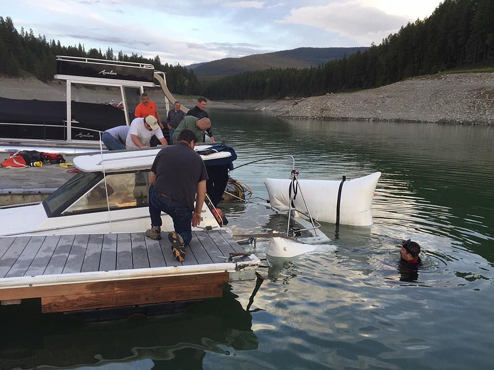 Members of David Thompson Search and Rescue responded Thursday to a call for a sinking boat at the Lake Koocanusa Marina. Divers were able to remove the sunken vessel from the marina area and load it onto a trailer for retrieval from the lake.
