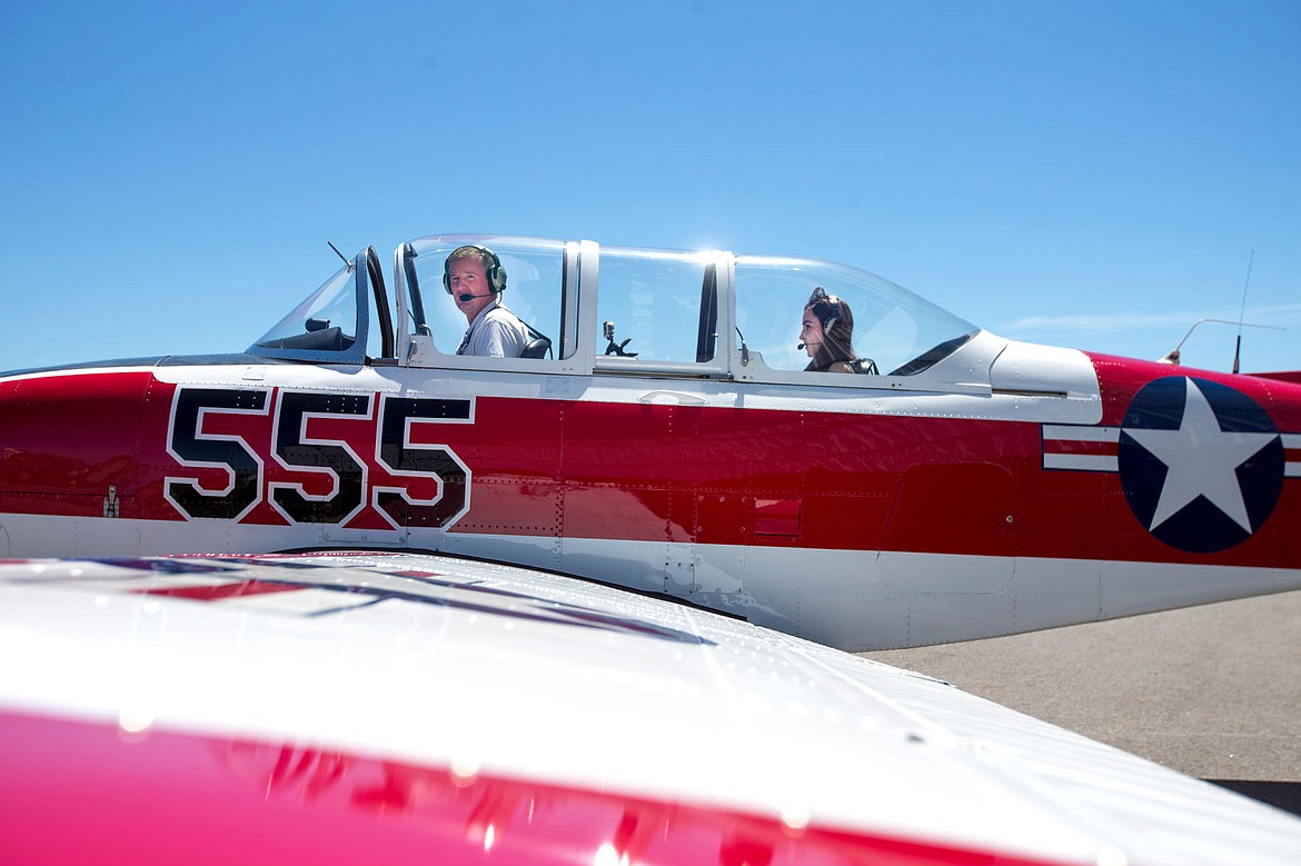 HAYDEN — While being picked up and placed inside the cockpit of a 1958 T-34 Beechcraft Friday afternoon at the Coeur d'Alene Airport, Jamie Babin said she wasn't as nervous as she thought she would be.